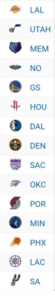 First, think of Denver, Portland, Dallas, Houston, Golden State, and the Clippers (bums). These seven names make sense right? But there is only one spot left after them. You are telling me Utah, the Pelicans and Phoenix have to battle it out also?